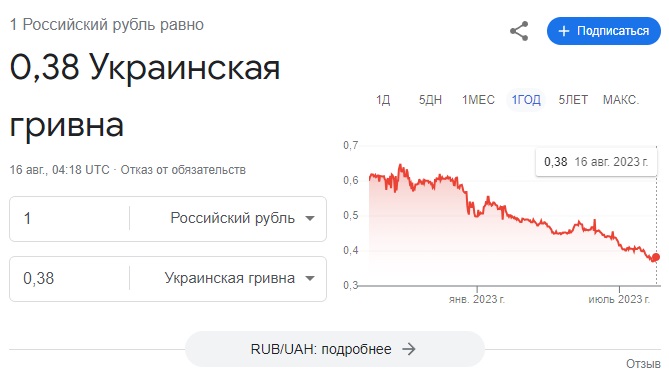 Последние 6 месяцев курс украинской гривны растестет в сравнении с рублем.