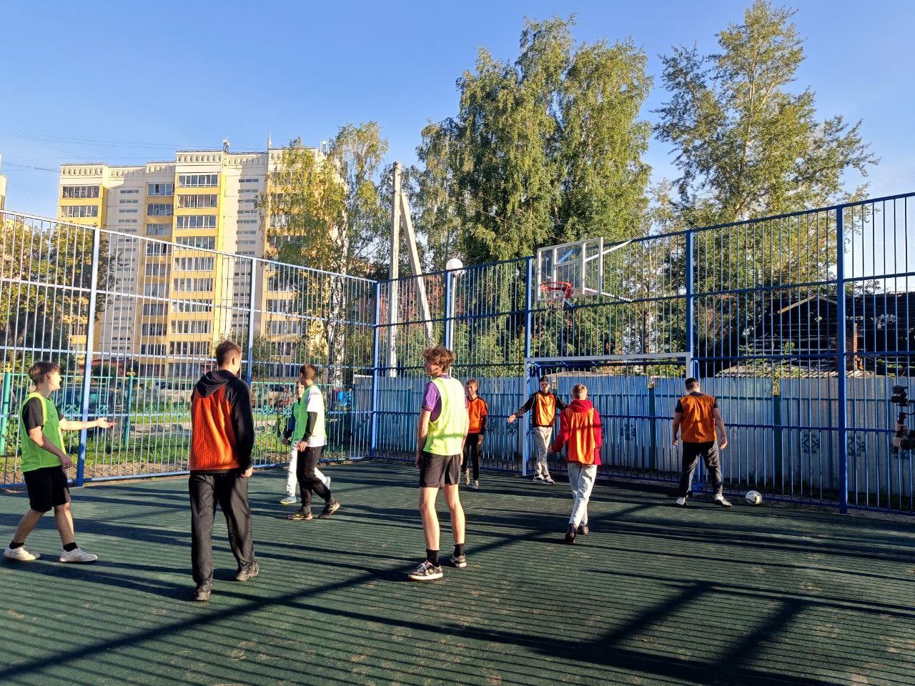Летом здесь были демонтированы старые аварийные объекты, уложено безопасное покрытие, установлено металлическое ограждение, футбольные ворота и кольца для баскетбола. Здесь можно не только играть, но и профессионально тренироваться.