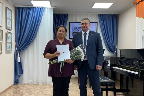 Депутат Сергей Винокуров встретился с педагогами и учениками Детской школы искусств имени Заволокиных в Парабельском районе, поздравил с 20-летним юбилеем художественное отделение школы и вручил парламентские награды.
