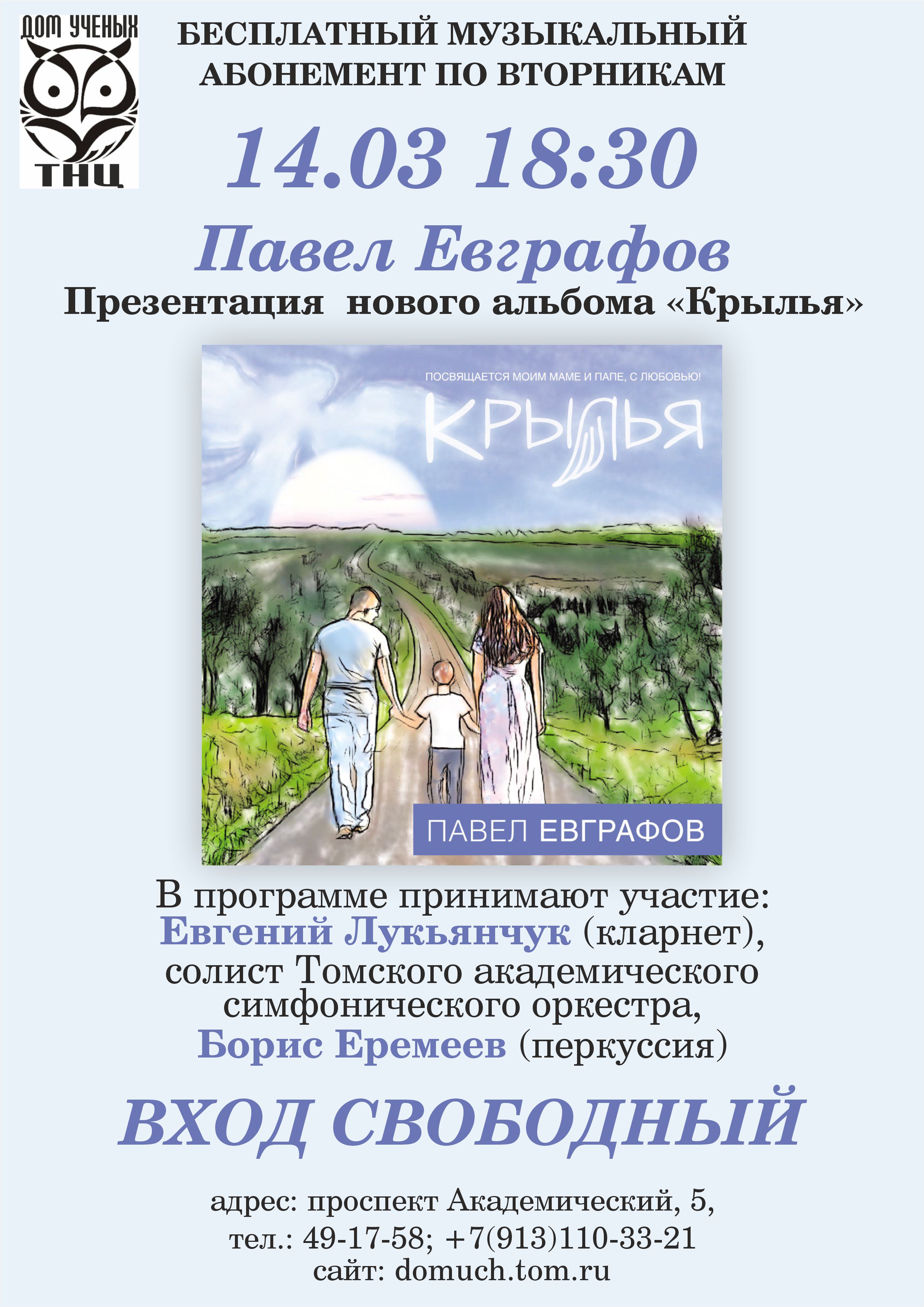 Весна пришла: светит солнце, свежий воздух бодрит и манит расправить "КРЫЛЬЯ" вместе с известным томским певцом и композитором Павлом Евграфовым!