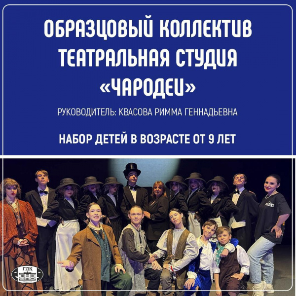 Театральная студия «Чародеи» Городского дома культуры им.Н.Островского объявляет набор детей от 9 лет