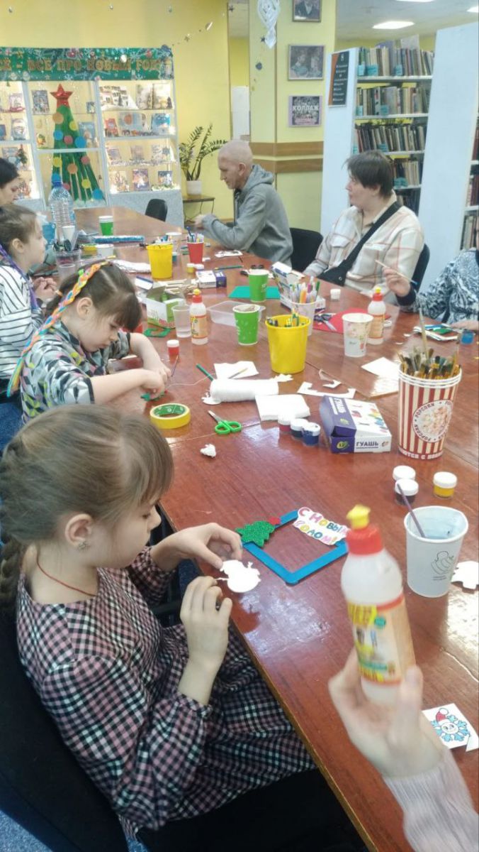 На мастер-классе мы с ребятами и их родителями создавали новогодние окошки, которые стали замечательным украшением. Блестящая ёлочка и игривая снежинка добавили ярких красок. А особенно поразил всех веселый снеговичок — он получился таким живым и игривым, что даже взрослые не могли удержаться от улыбки! Ребята и родители остались очень довольны результатами нашего совместного творчества.