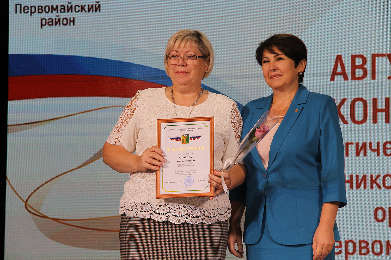 На этом торжественная часть конференции не завершилась. На сцене «Чулыма» прошла церемония награждения. Грамоты областного департамента общего образования за плодотворную, творческую работу, профессиональное мастерство и по результатам 2022-2023 учебного года И.И. Сиберт вручила учителю физкультуры Сергеевской школы Игорю Викторовичу Патракову, учителю начальных классов Первомайской школы Ирине Алексеевне Саксман, учителю начальных классов Берёзовской школы Елене Карловне Флорен.