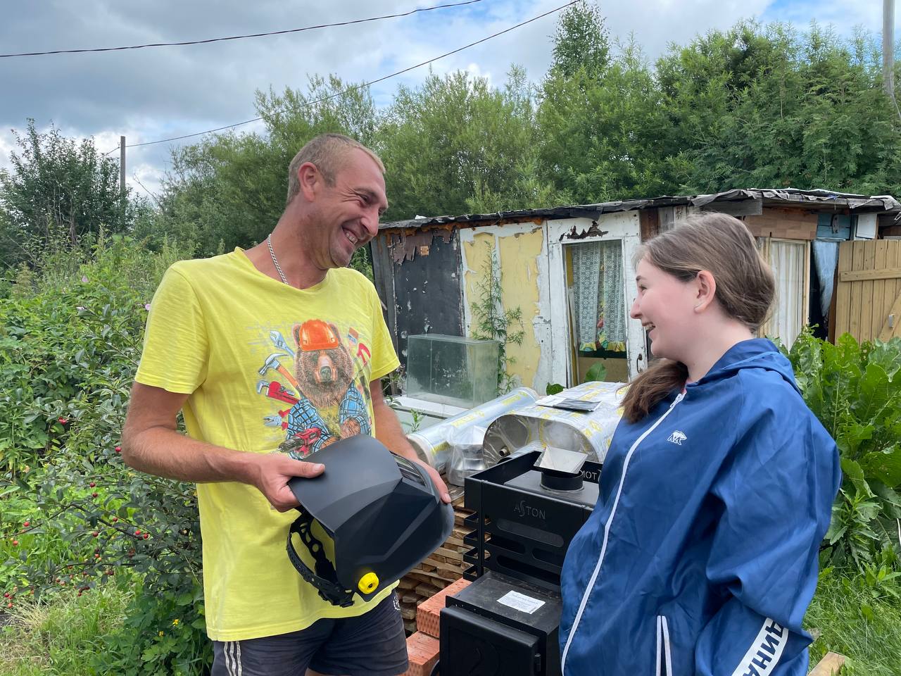 Молодогвардейцы выступили с теплыми словами и пожеланиями успехов в карьере, а также вручили сладкий презент и новую сварочную маску.