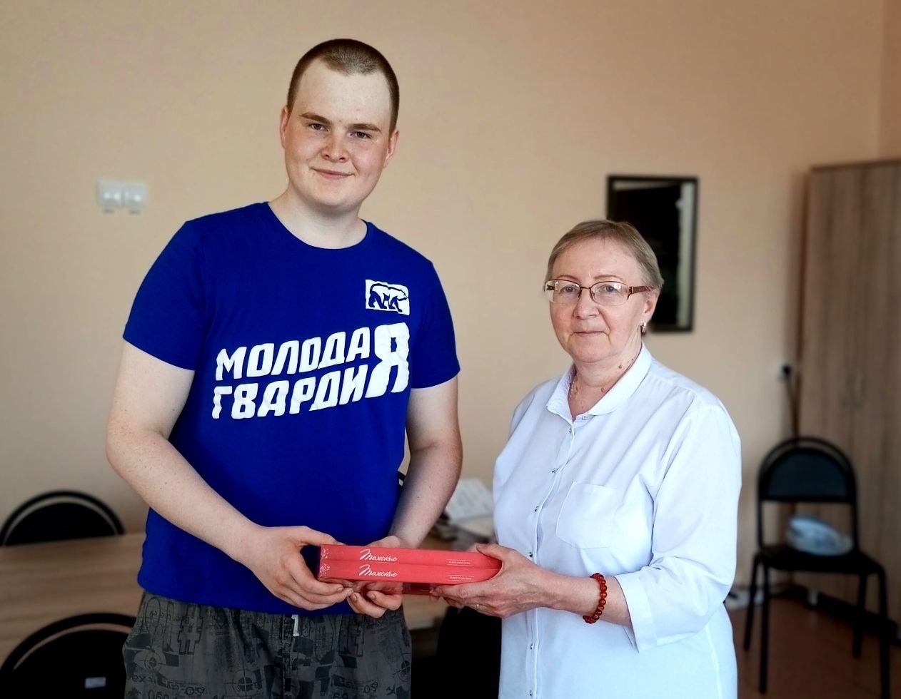 Молодогвардейцы вручили сладкий подарок, а также поблагодарили сотрудников агентства за их ежедневный труд на благо жителей поселка.