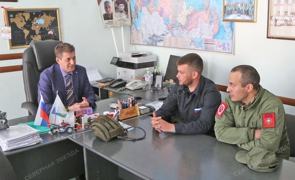 Мобилизованные в зону специальной военной операции стрежевчане возвращаются домой на побывку. С тремя бойцами журналисты в понедельник встретились у заместителя мэра по социальной политике В.В.Салмина.