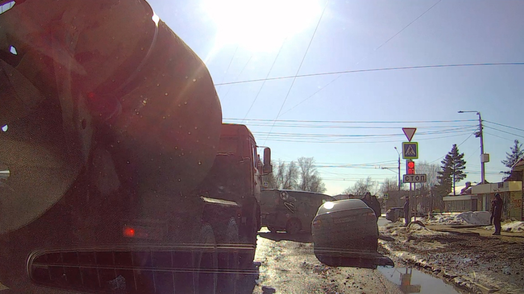 Автомобиль провалился в яму на пересечении улиц Транспортная и Пушкина в Томске