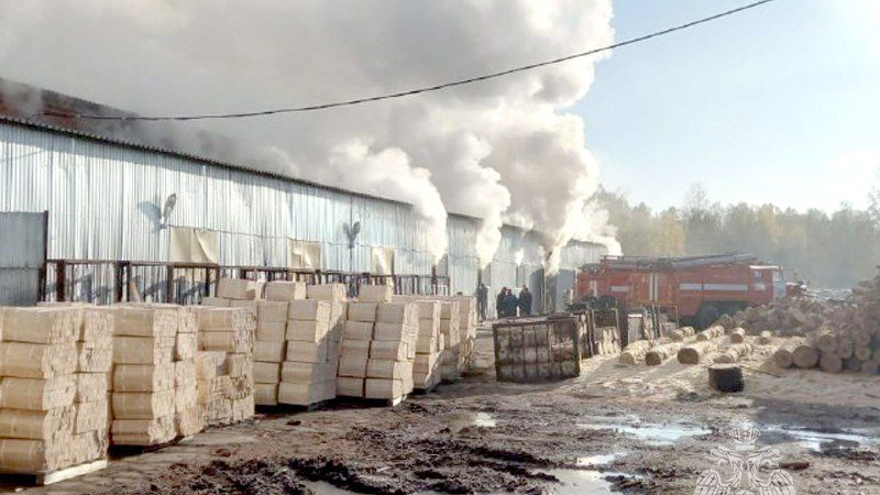 Крупный пожар произошел в цехе на лесозаготовительном предприятии в Асине
