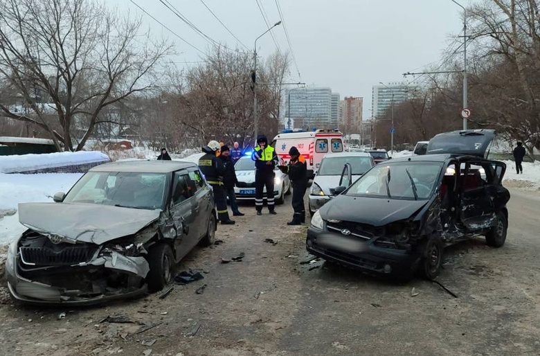 По предварительным данным, автомобиль Hyundai Getz выехал на полосу встречного движения и столкнулся с двумя автомобилями, которые двигались на встречу