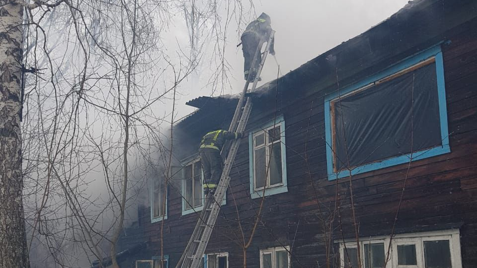 В Томске потушили крупный пожар в двухэтажном расселенном доме