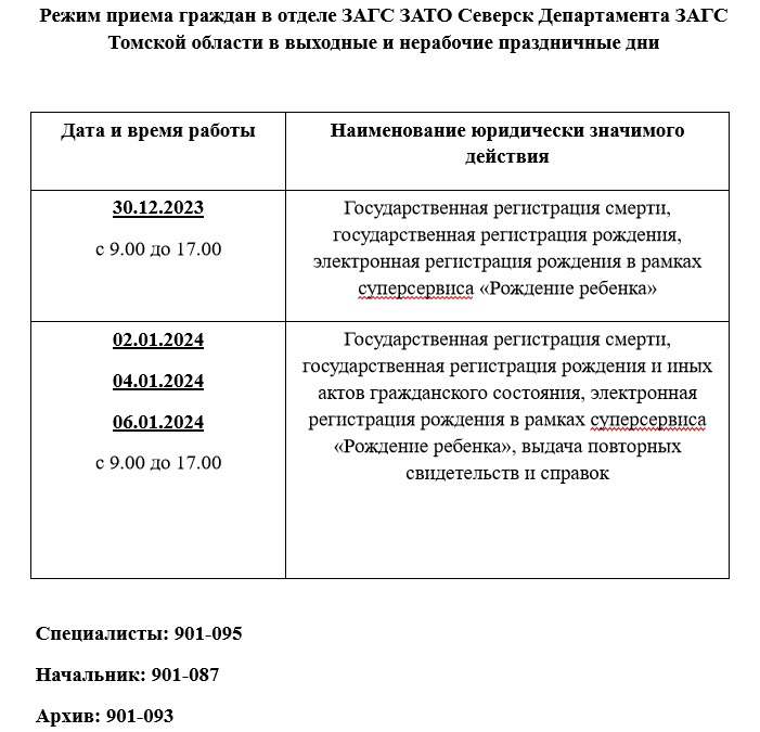 График работы ЗАГСа в новогодние праздники