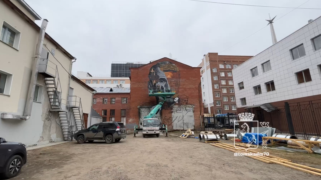 Художники начали создавать мурал возле ТЮЗа в Томске