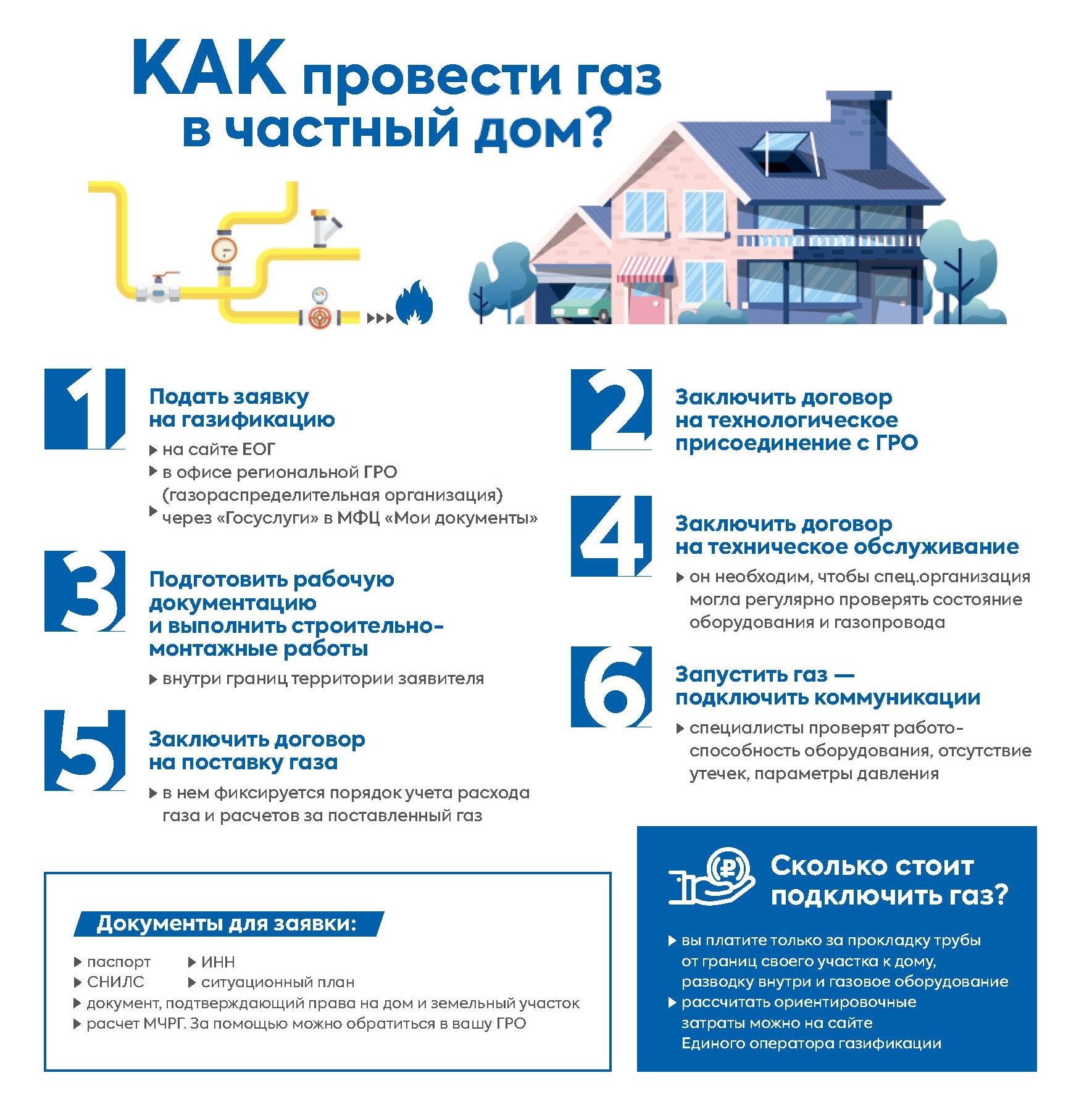 Газификация распространяется на подключение индивидуальных жилых домовладений, принадлежащих на праве собственности заявителям - физическим лицам, в населённых пунктах, в которых уже проложены газораспределительные сети (полностью или частично), и требуется достроить газопроводы до границ земельных участков с домовладениями.