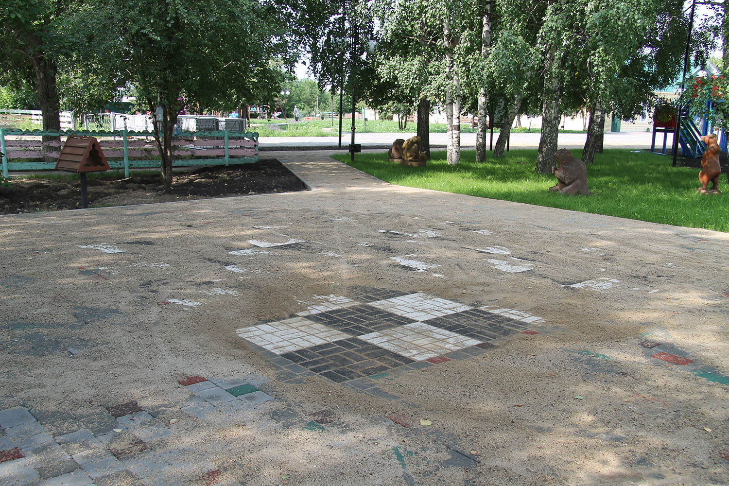 На площадке возле галереи искусств, окружённой берёзами, из тротуарной плитки выложена большая шахматная доска. После завершения благоустроительных работ на ней будут установлены большие шахматные фигуры. На шахматной поляне появится и два небольших шахматных столика. Любители интеллектуальной спортивной игры смогут проводить свободное время в тени берёз, играя большими или привычными шахматными фигурами.