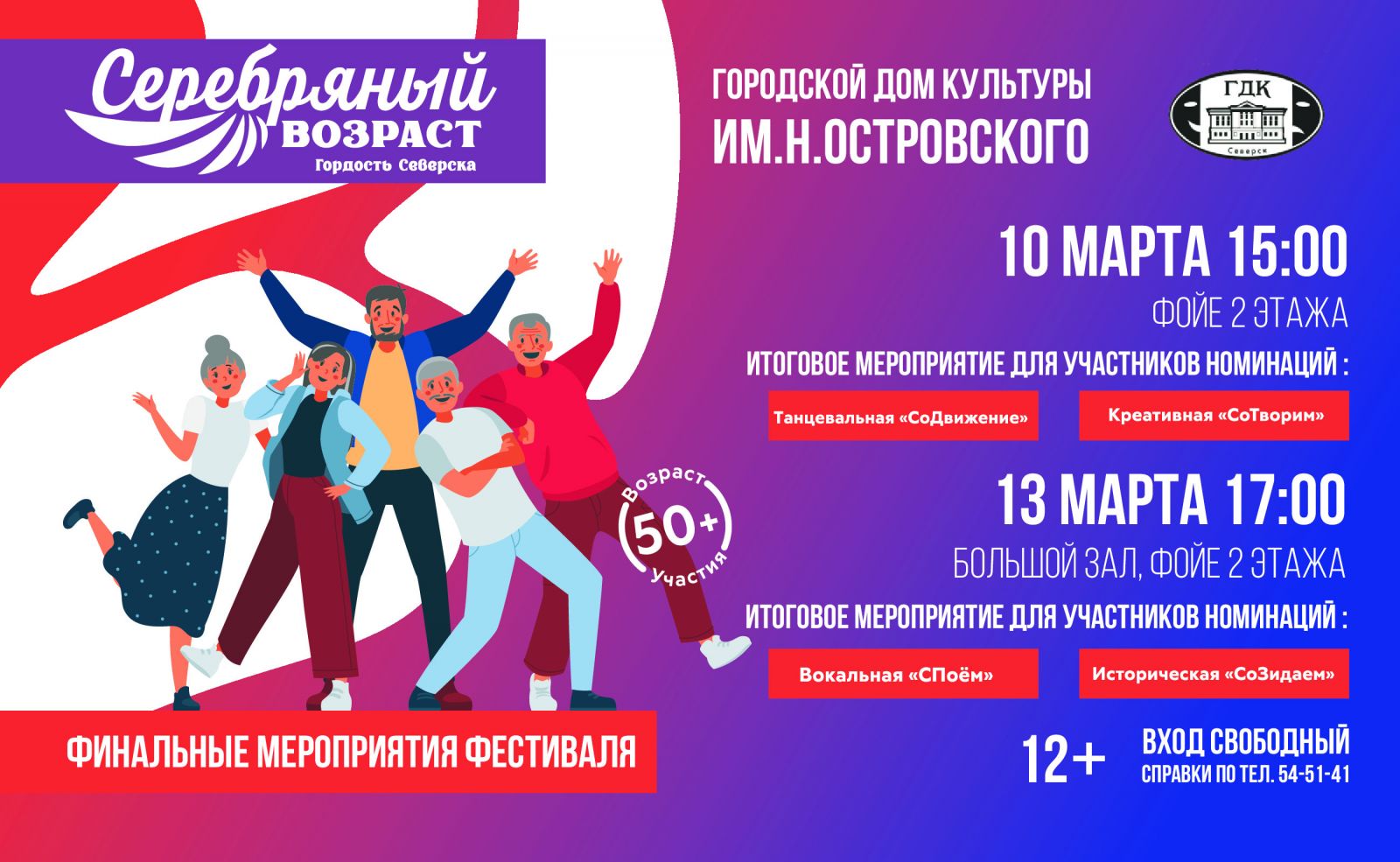 В Городском доме культуры им.Н.Островского состоится финальное мероприятие фестиваля «Серебряный возраст – гордость Северска» 13 марта в 17:00 в Городском доме культуры им.Н.