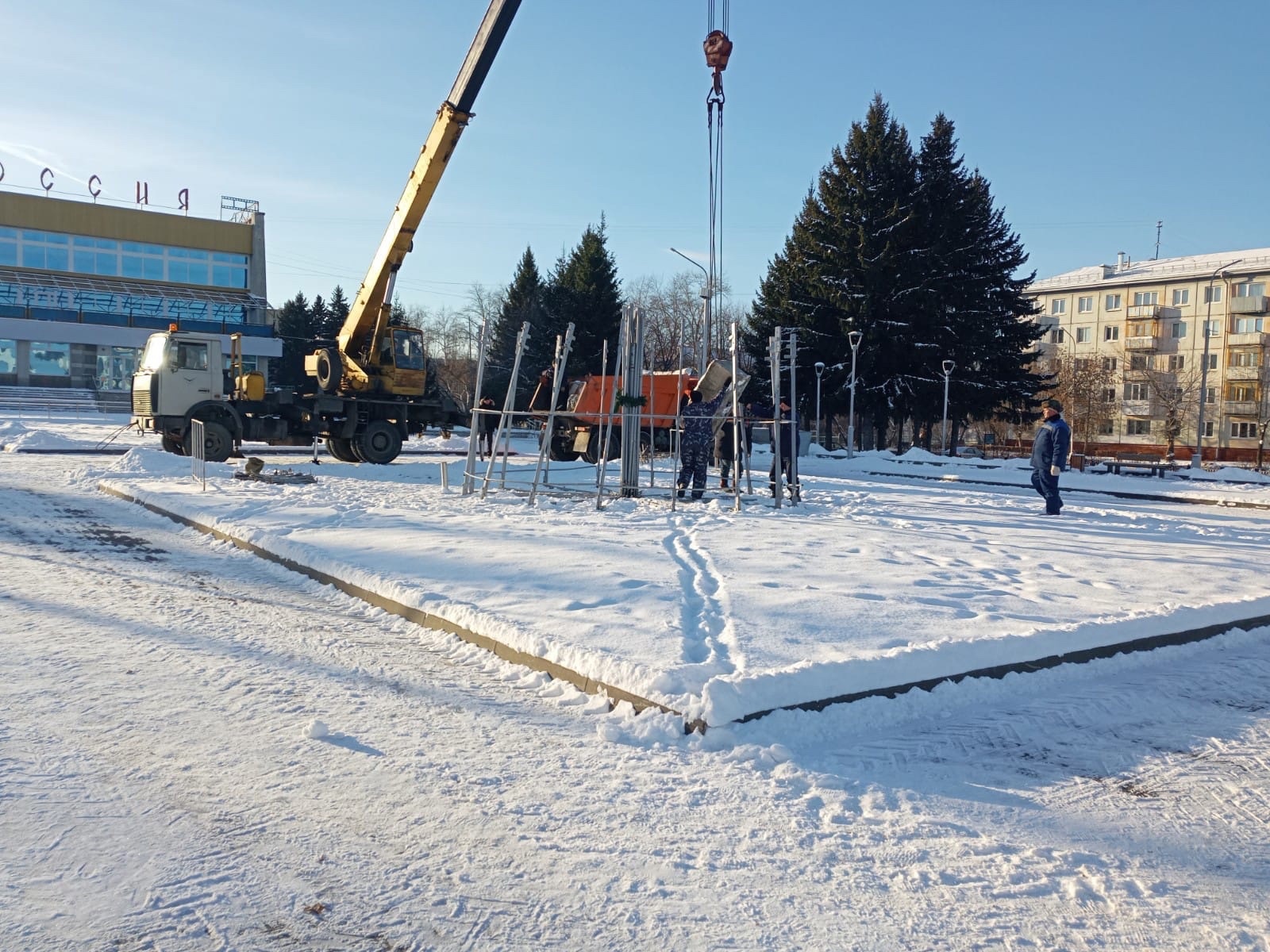 Работники МБЭУ приступили к монтажу главной городской ели Северска.