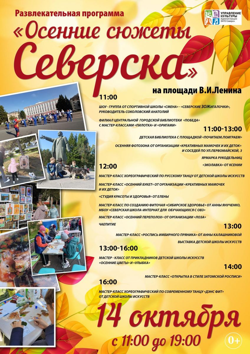 На площади им.В.И. Ленина 14 октября с 11:00 до 19:00 состоится городской праздник «Осенние сюжеты Северска» (0+).