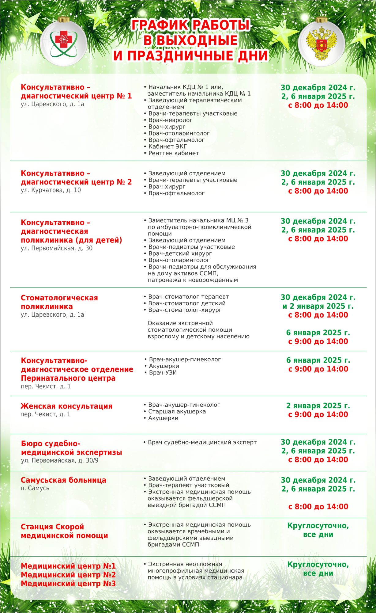 График работы ФГБУ СибФНКЦ ФМБА России в выходные и праздничные дни