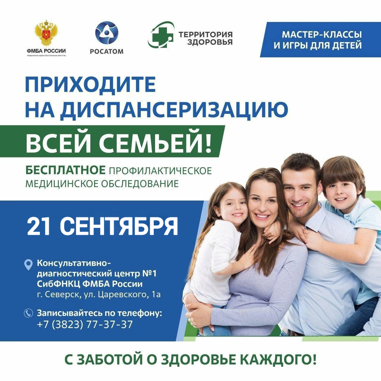 Приглашаем северчан с маленькими детьми на семейную диспансеризацию, которая пройдет в рамках проекта «Территория здоровья», в субботу, 21 сентября, с 10.00 до 13.00.