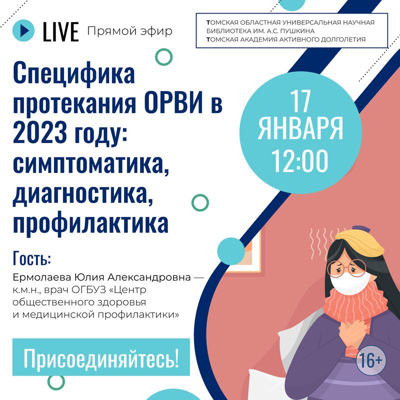 Прямой эфир будет посвящен теме «Специфика протекания ОРВИ в 2023 году: симптоматика, диагностика,