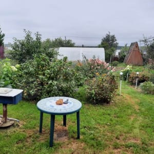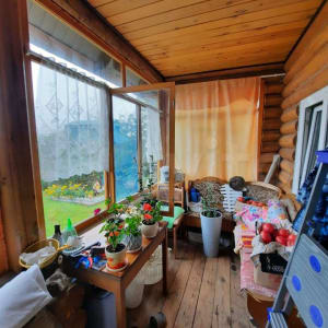 Продается дом , из оцилиндрованного бревна, обшит сайдингом под дерево. Большая веранда с выходом в сад. Второй мансардный этаж с лоджией. С/у в доме, с душевой кабиной и теплым полом. Централизованное водоснабжение, 2 бойлера, на 15 л и 50 л., септик. Отопление электрическое + дровяная печь. Косметический ремонт в доме, пластиковые окна и натяжные потолки частично. Участок имеет правильную форму, ровный, очень ухоженный, есть 2 теплицы, плодово -ягодные и декоративные кусты, много цветов. Рассмотрим варианты обмена на к/г 2 комнатную квартиру на 2 этаже с доплатой.
