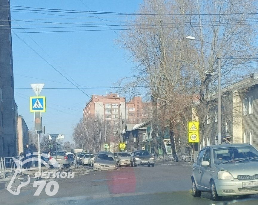 Асфальт провалился на пересечении Транспортной и Пушкина в Томске, проезжающий автомобиль угодил в яму колесом. Об этом 17 марта рассказали томичи в паблике «Регион-70 | Томск» во «ВКонтакте».